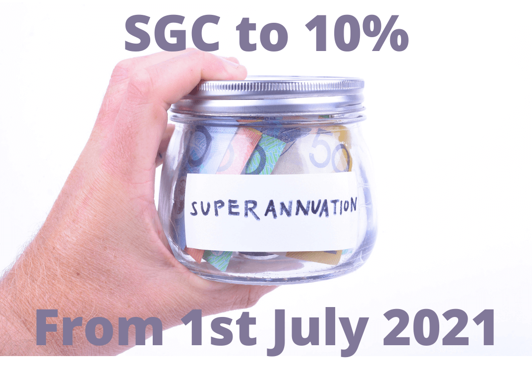 Super Guarantee Contribution rate increases from 9.5% to 10%. The rate will increase again to 10.5% from July 1, 2022 and 11% from July 1,